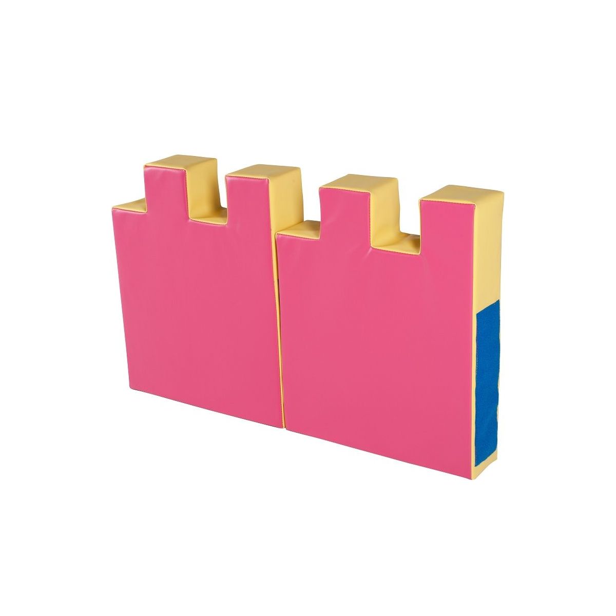 The Parapet can act as wall protection and be used in a variety of combinations to create spaces to suit your needs and the ages of the children. Pens can be built fully closed for smaller children or open and modular for children who like to build their own space with the help of adults. Each wall section is fixed by Velcro to the next one, whether a heart, a castle or a simple parapet. On request, we can add Velcro on the back of the parapets if willing to use them as wall protections.