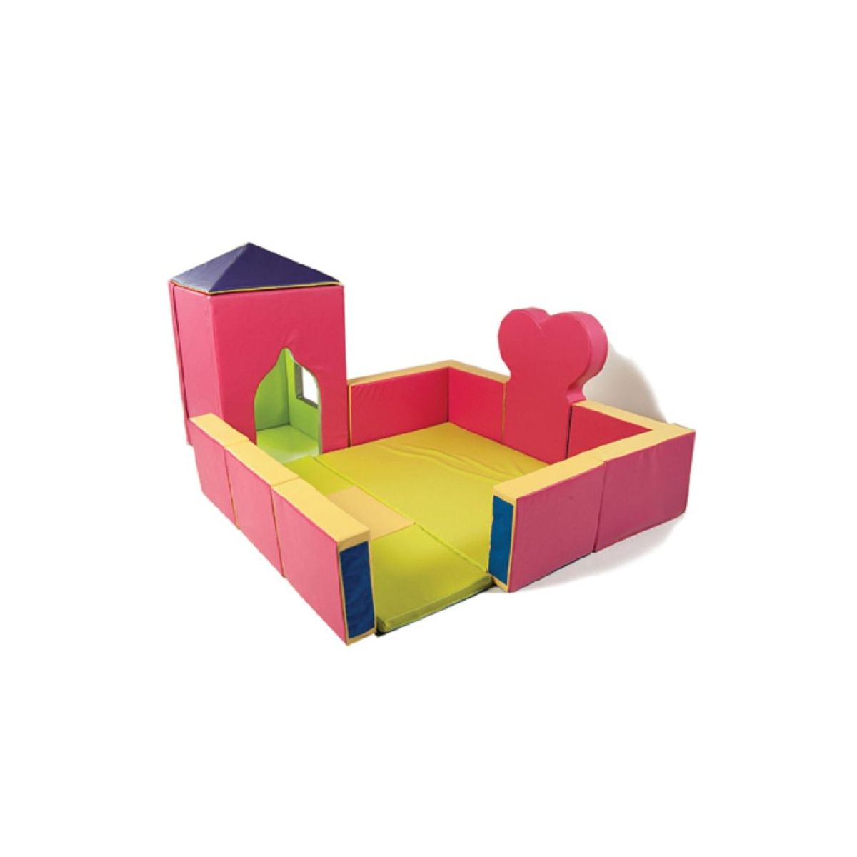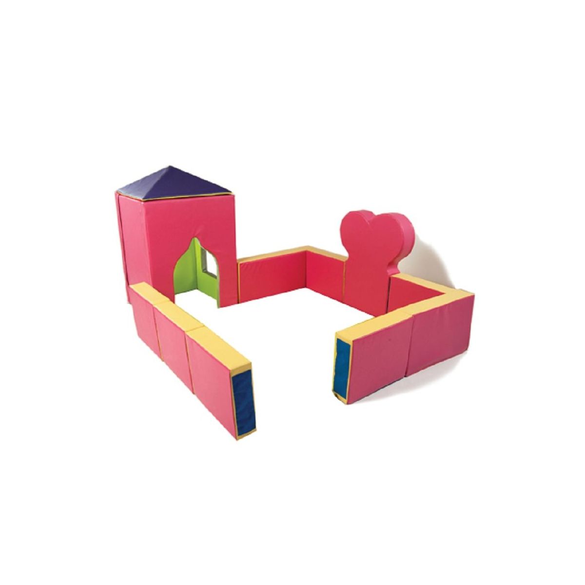 The parapets walls can act as wall protection and be used in a variety of combinations to create spaces to suit your needs and the ages of the children. Pens can be built fully closed for smaller children or open and modular for children who like to build their own space with the help of adults. Each wall section is fixed by Velcro to the next one, whether a heart, a castle or a simple parapet. On request, we can add Velcro on the back of the parapets if willing to use them as wall protections.