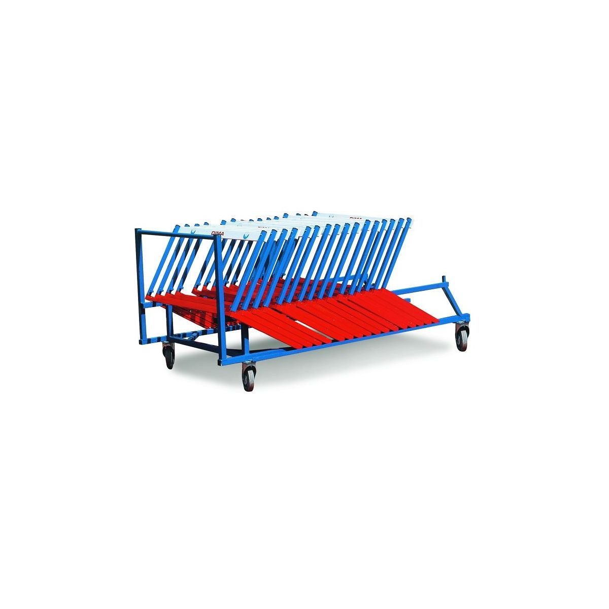 Fabriqué pour faciliter le transport et le stockage des haies, ce chariot de transport peut contenir jusqu’à 30 haies. Universel, ce chariot transporte aussi bien les haies de compétition que les haies d’entrainement … C’est un matériel indispensable pour les clubs et les utilisateurs scolaires des stades d’athlétisme.