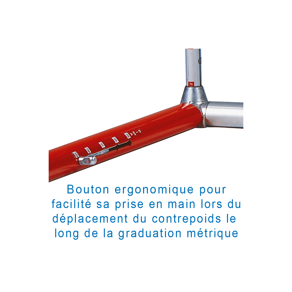 Counter-weight adjustment made by ergonomic aluminium knob for ease of handling.