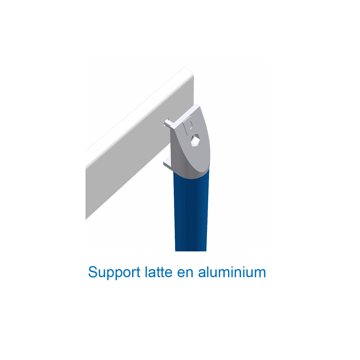 Aesthetic aluminium profiles. P.V.C. hurdle board. Extruded extremities protected by rubber end pieces. Moulded aluminium hurdle board's support. Prestige finish for this outstanding hurdle entirely in aluminium with moulded sections.
