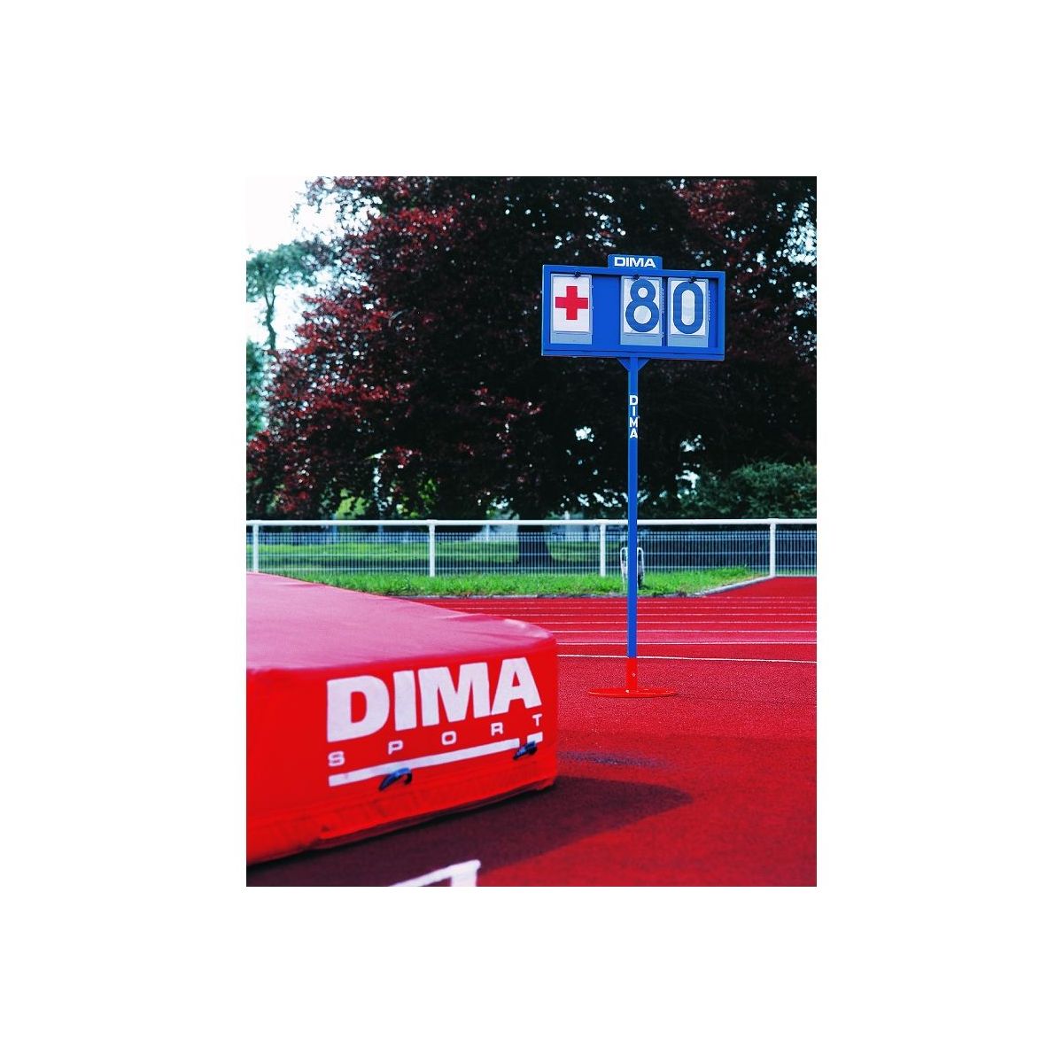 The pole-vault upright setting indicator is a 360° rotating board informing athletes and judging panels of any adjustements to pole-vault uprights.