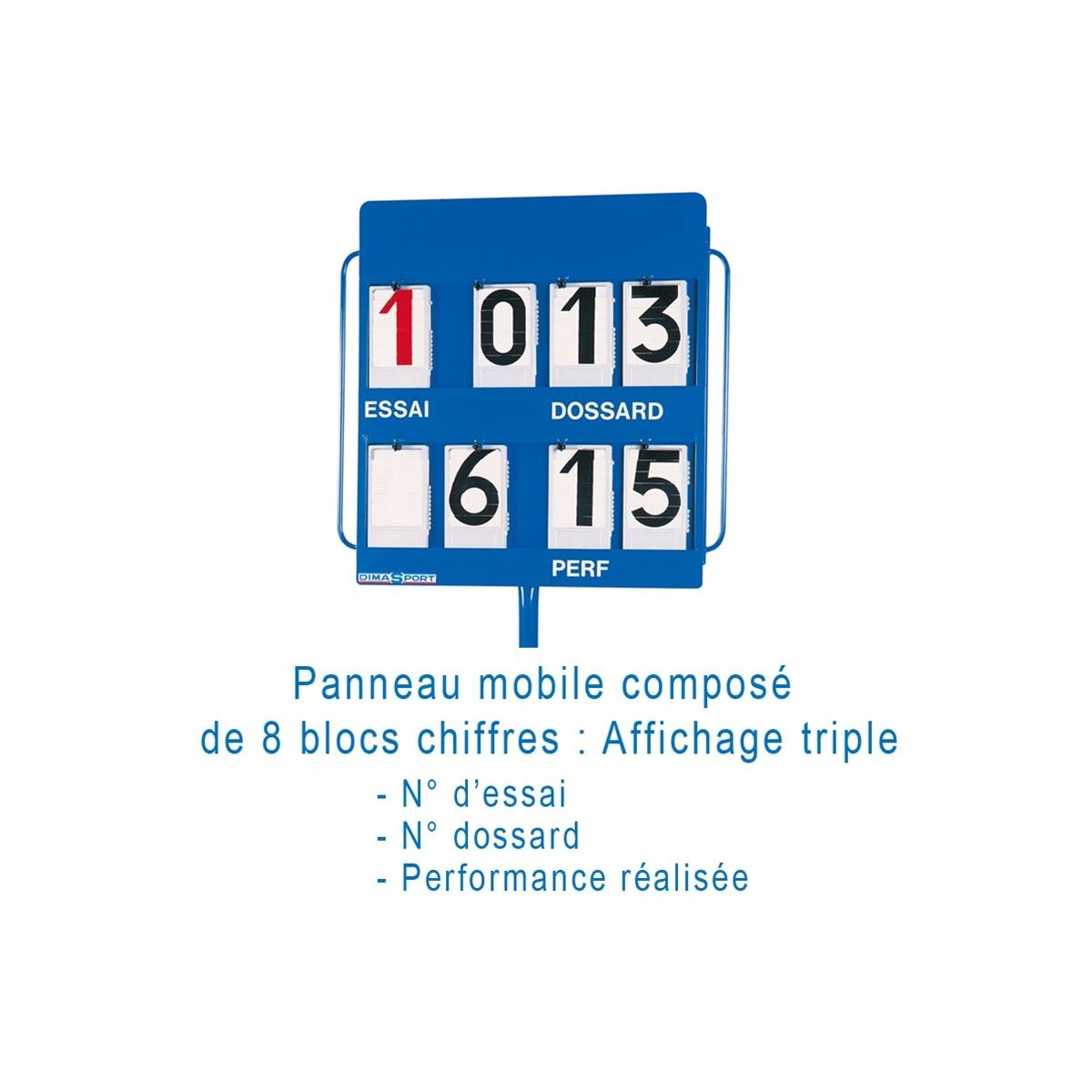 Fabriqué en France dans nos usines de l’Est parisien, les panneaux d’affichage sont indispensables pour les concours d’athlétisme (saut à la perche, saut en hauteur …) ces panneaux d’affichages sur roulettes sont faciles à déplacer et permettent à l’ensemble du stade (spectateurs, athlètes et coach) de suivre simplement l’avancée du concours notamment le réglage de la hauteur des barres.