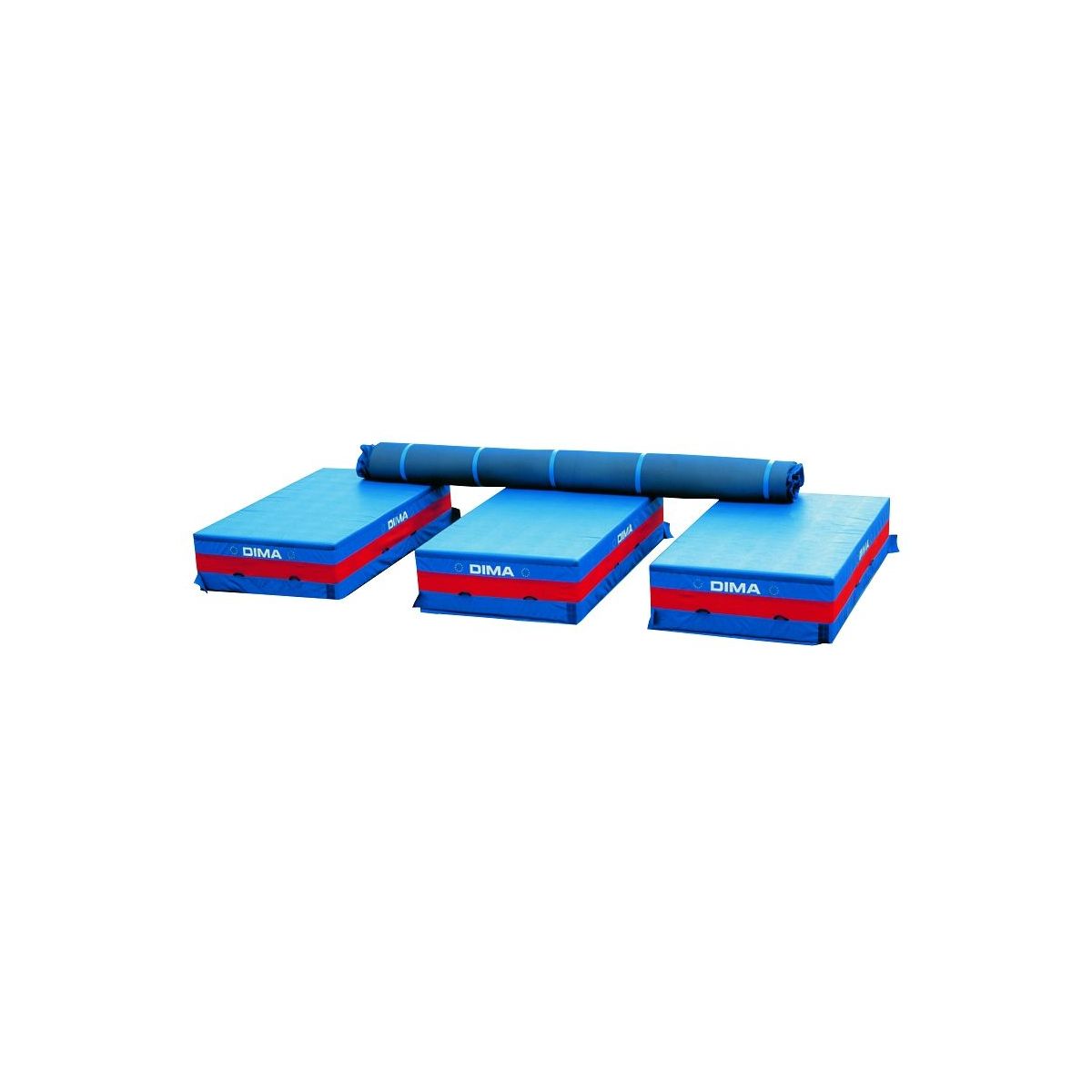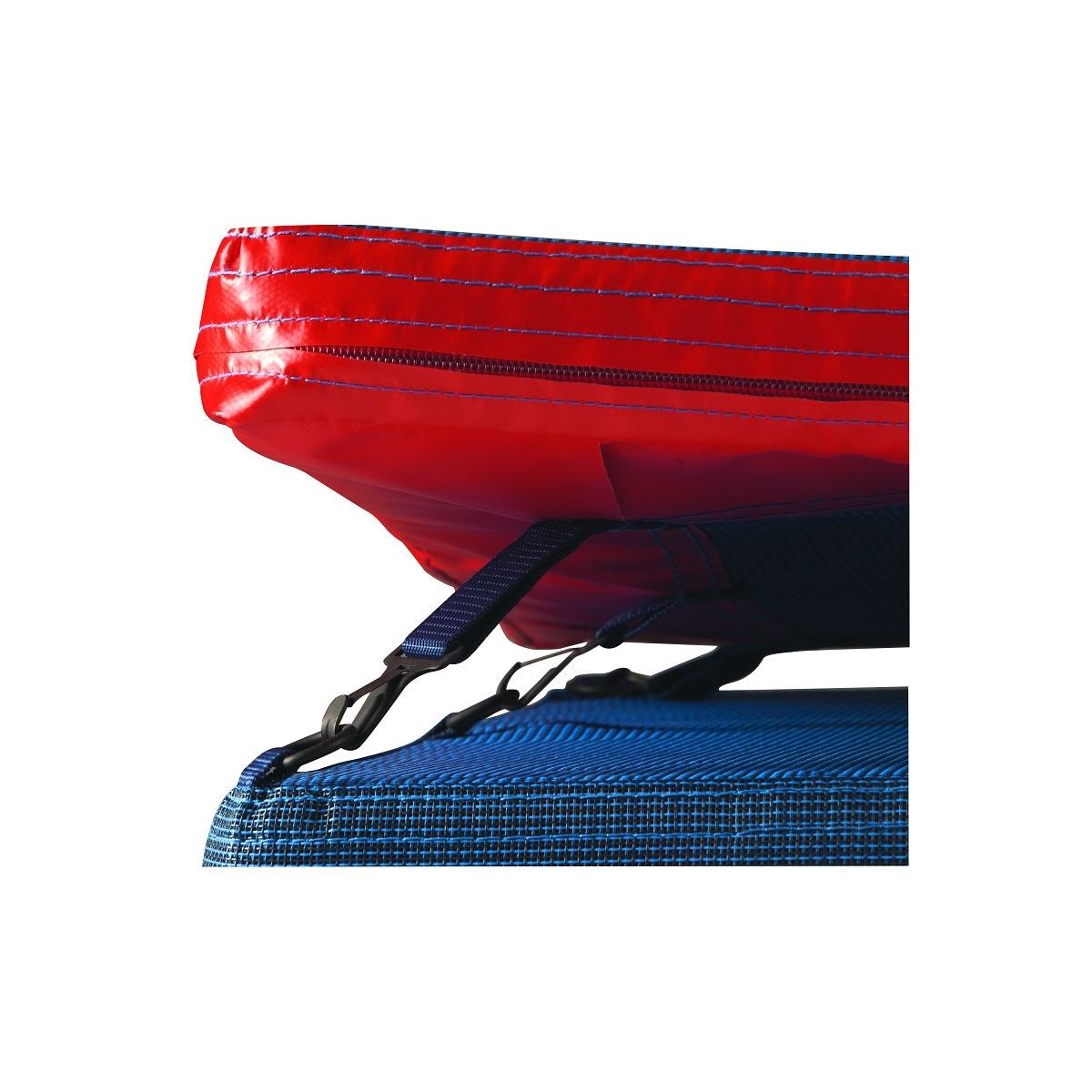 Ce tapis est fixé au matelas par des mousquetons non visibles, placés en dessous évitant ainsi d'accrocher et de blesser les athlètes. Composé d'une plaque de mousse polyuréthane 7cm houssée dans un tissus anti-pointes.