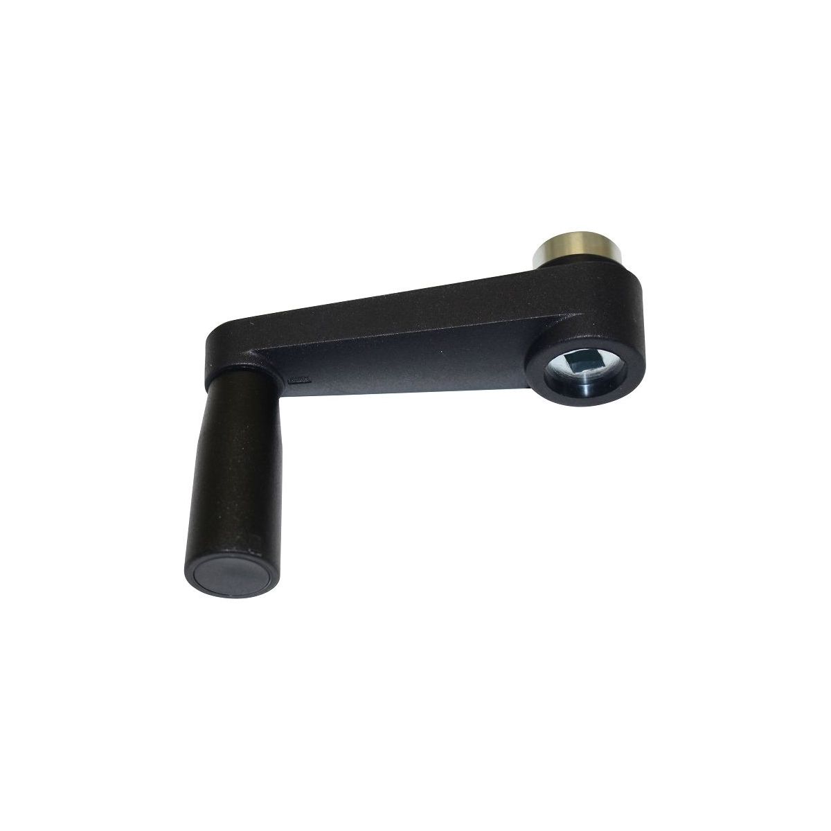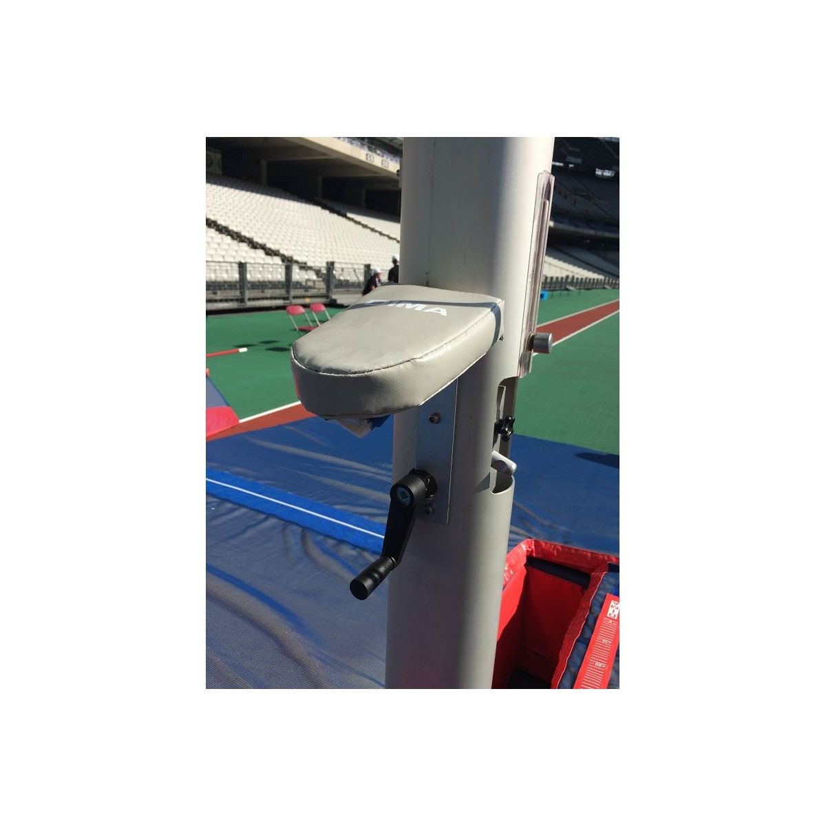 Pole vault cranking handle for raising and lowering the brackets on which the crossbar is placed.