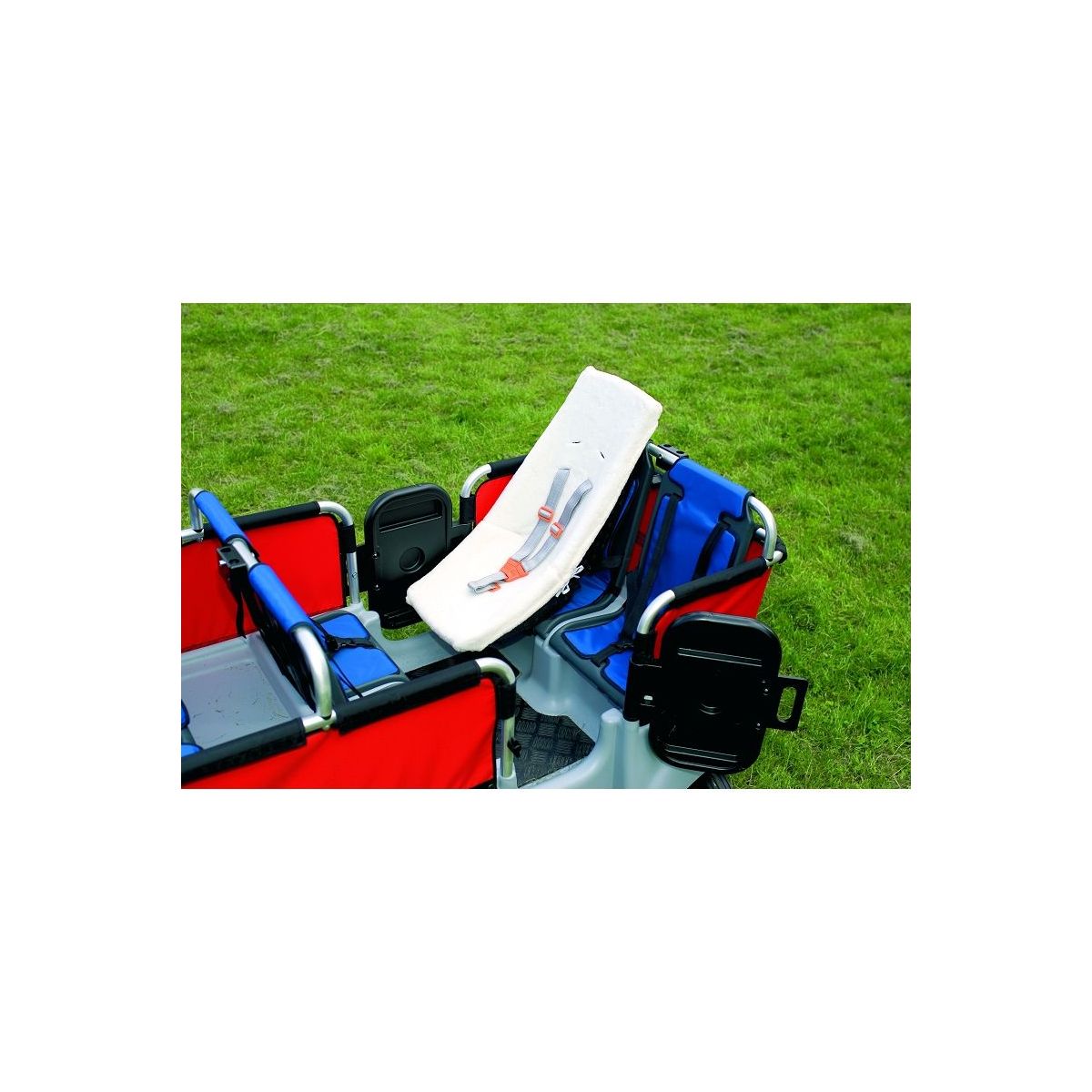 The Kiddy Bus Baby seat can be placed in two positions. If the baby is less than 6 months place the seat in flat position