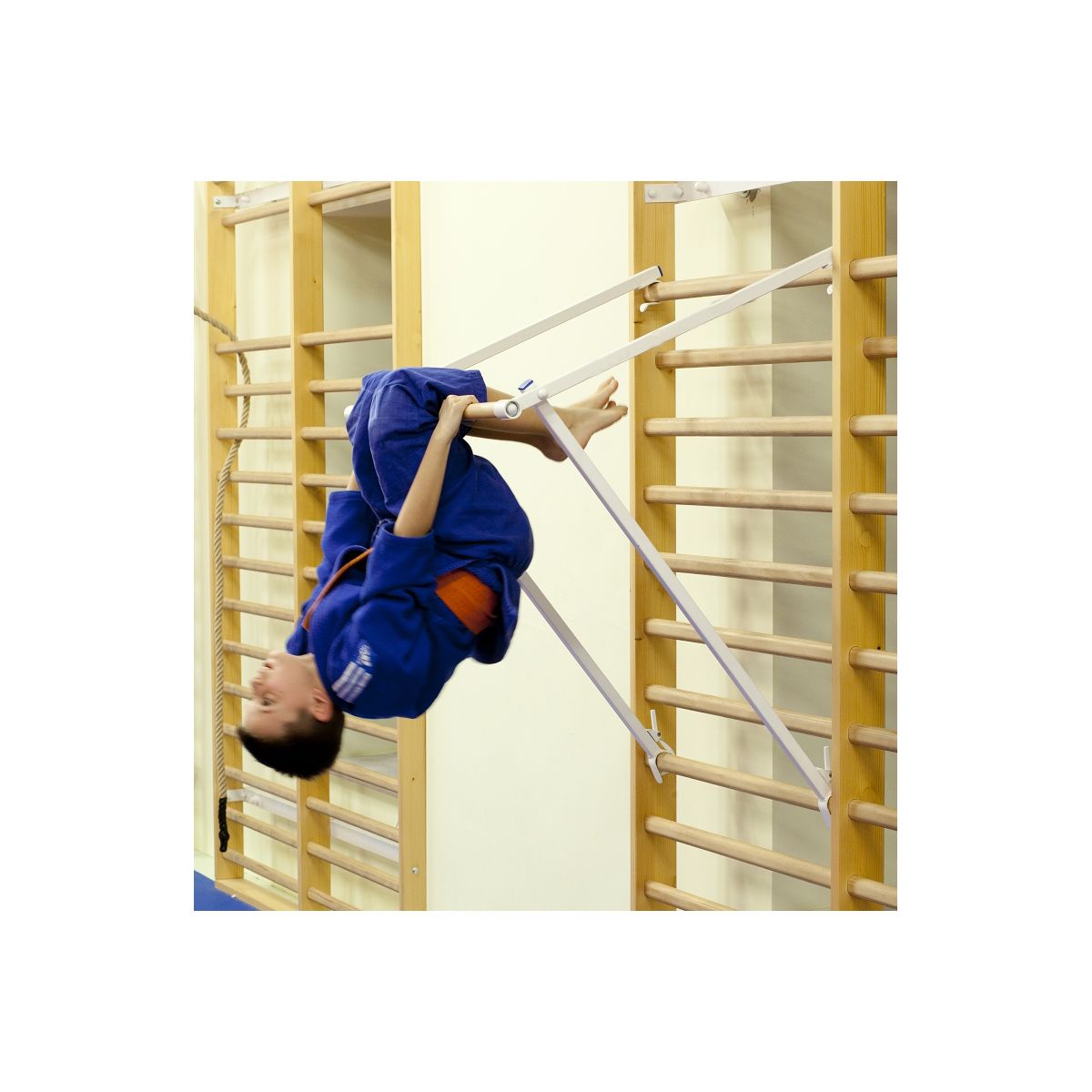 Adjustable height and distance with regard to the wall bar.