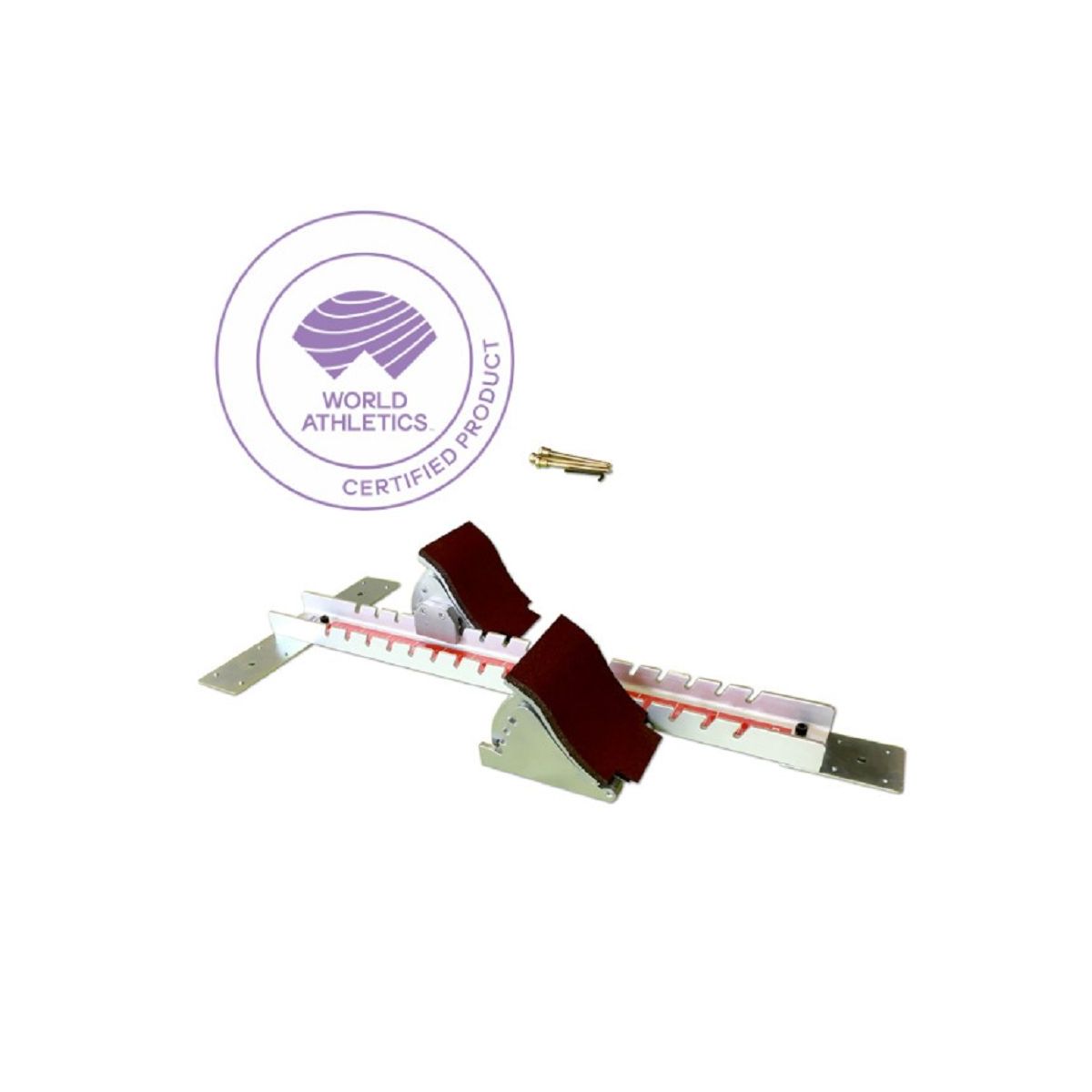 Delivered with spikes and pins to hold the starting block on synthetic or cinder track.
