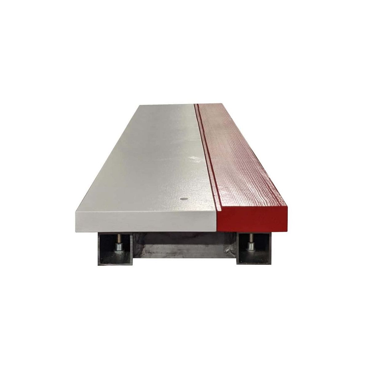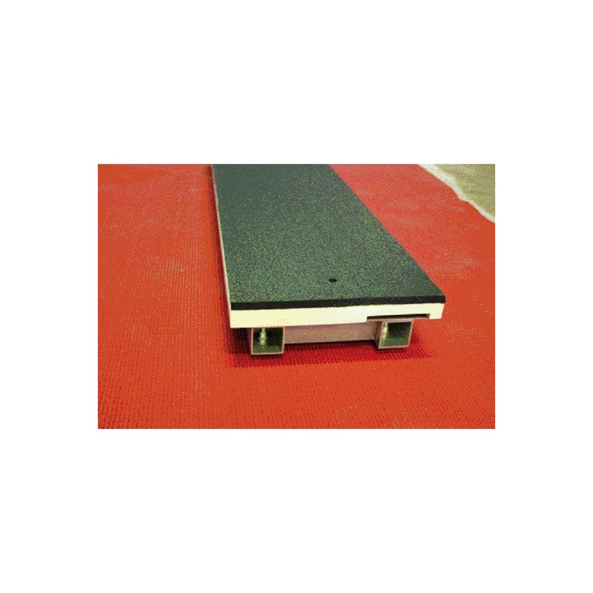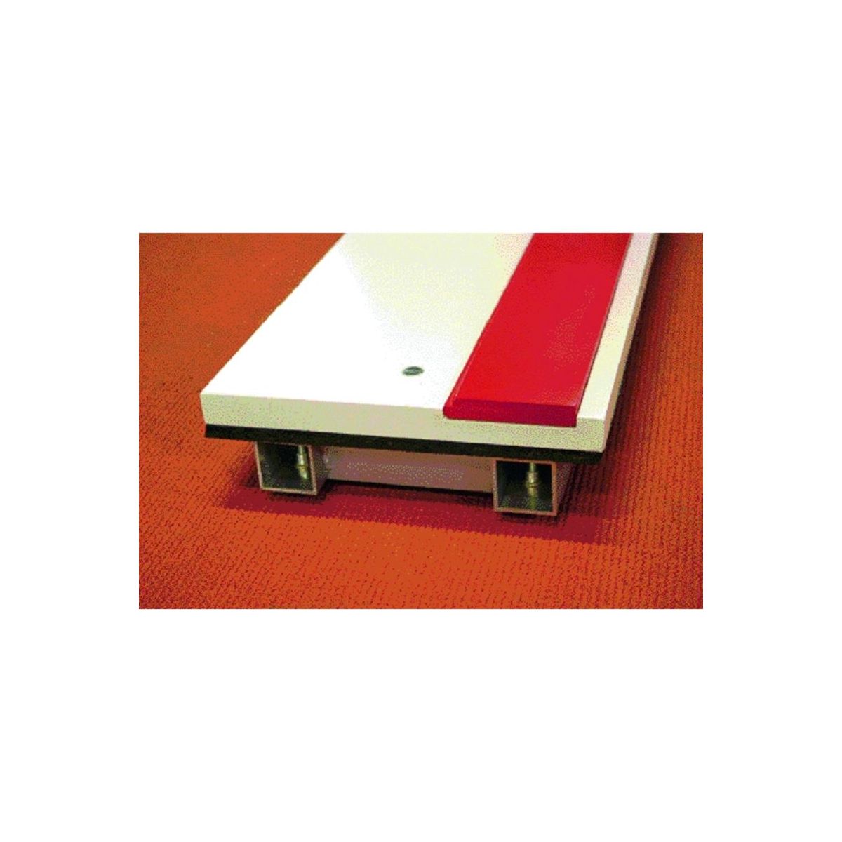 Reversible take-off board in white painted wood, fixed on an aluminum frame with leveling bolts for perfect alignment with the level of the track. Equiped with a red foul board for a good visibility by the athlete.