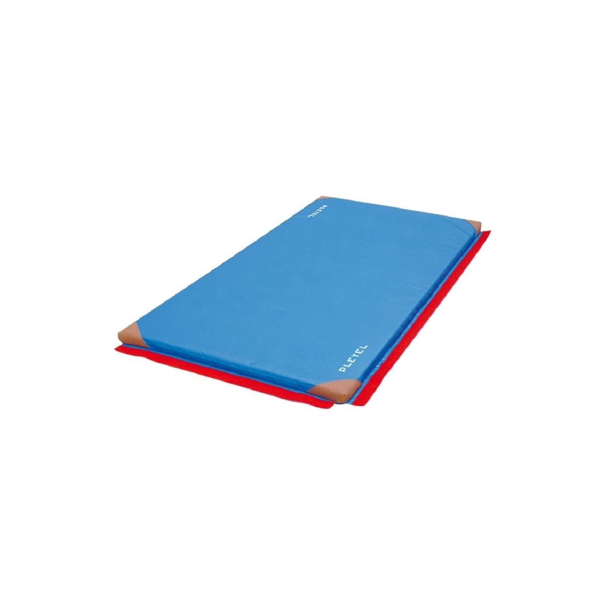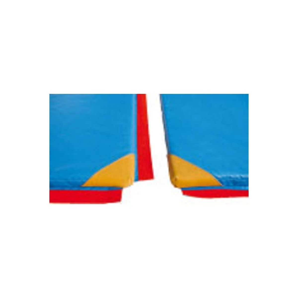 Tapis solidaires périmètre total munis de coins renforcés, façon sellier, se solidarisant grâce à de larges bandes de juxtaposition cousues sur tout le périmètre ce qui permet des assemblages indissociables, pour élaborer des surfaces de travail, d'exercices ou de jeux.