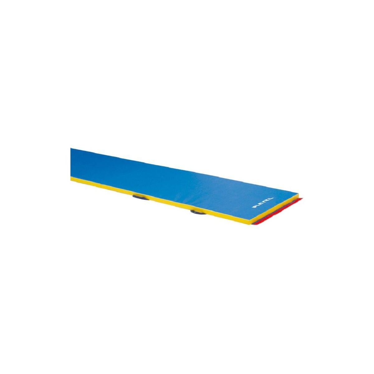 Les chemins de gymnastique solidaires en bout sont munis de larges bavettes de juxtaposition en bout permettant de relier plusieurs éléments ensemble
