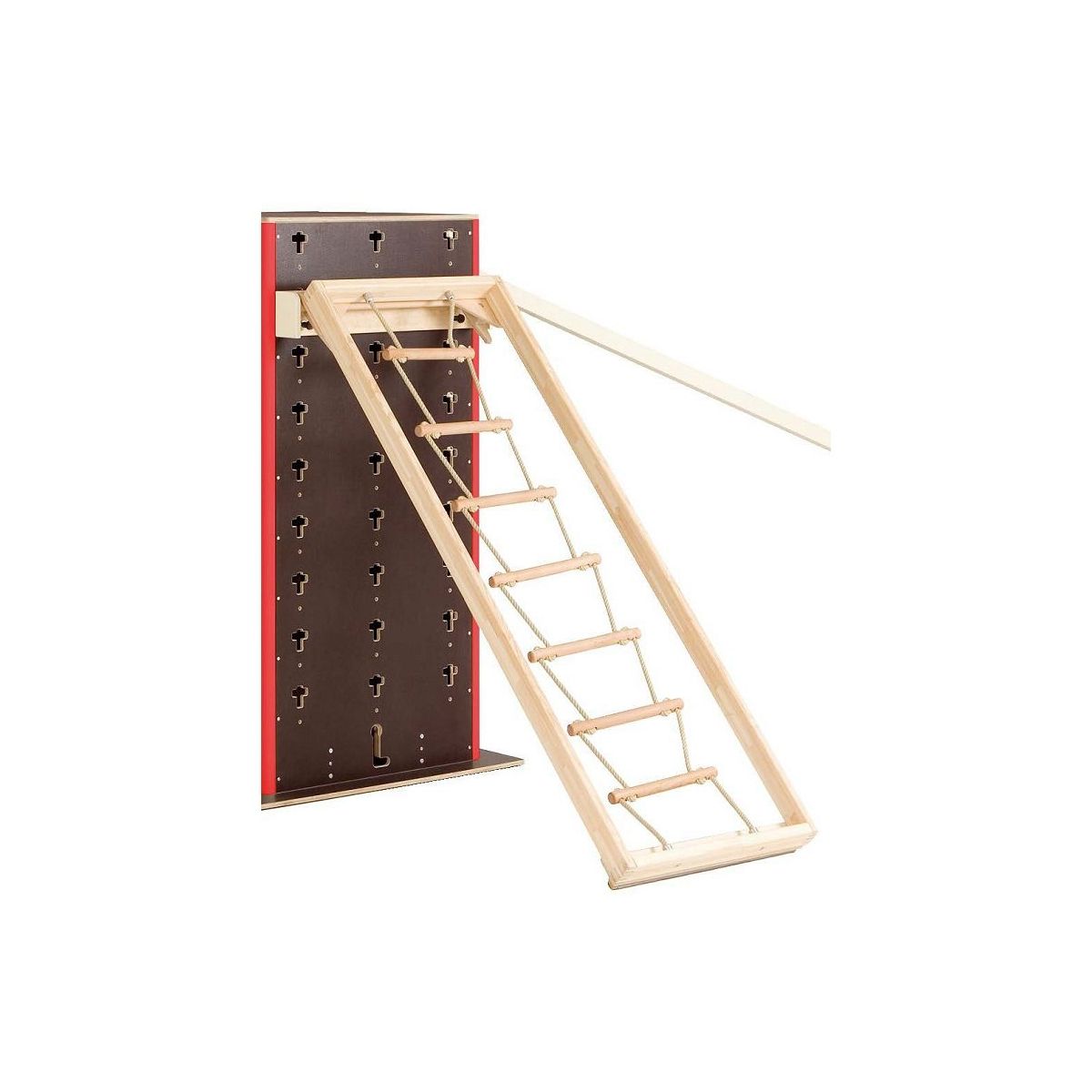L'échelle de corde se fixe au boxe carré et rectangulaire parkour grâce au multi adaptateur
