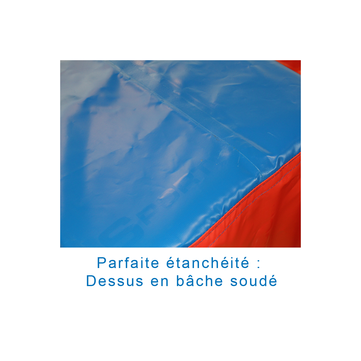 Dessus et entourage en PVC 1000 deniers. Soudures sur le dessus. Entourage cousu 4 piqûres.