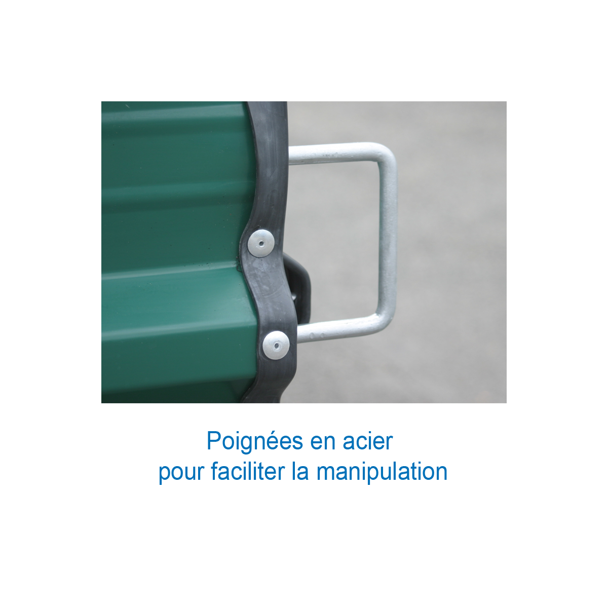 - Angles protégés par une cornière en tôle pliée et galvanisée. Finition brillante.