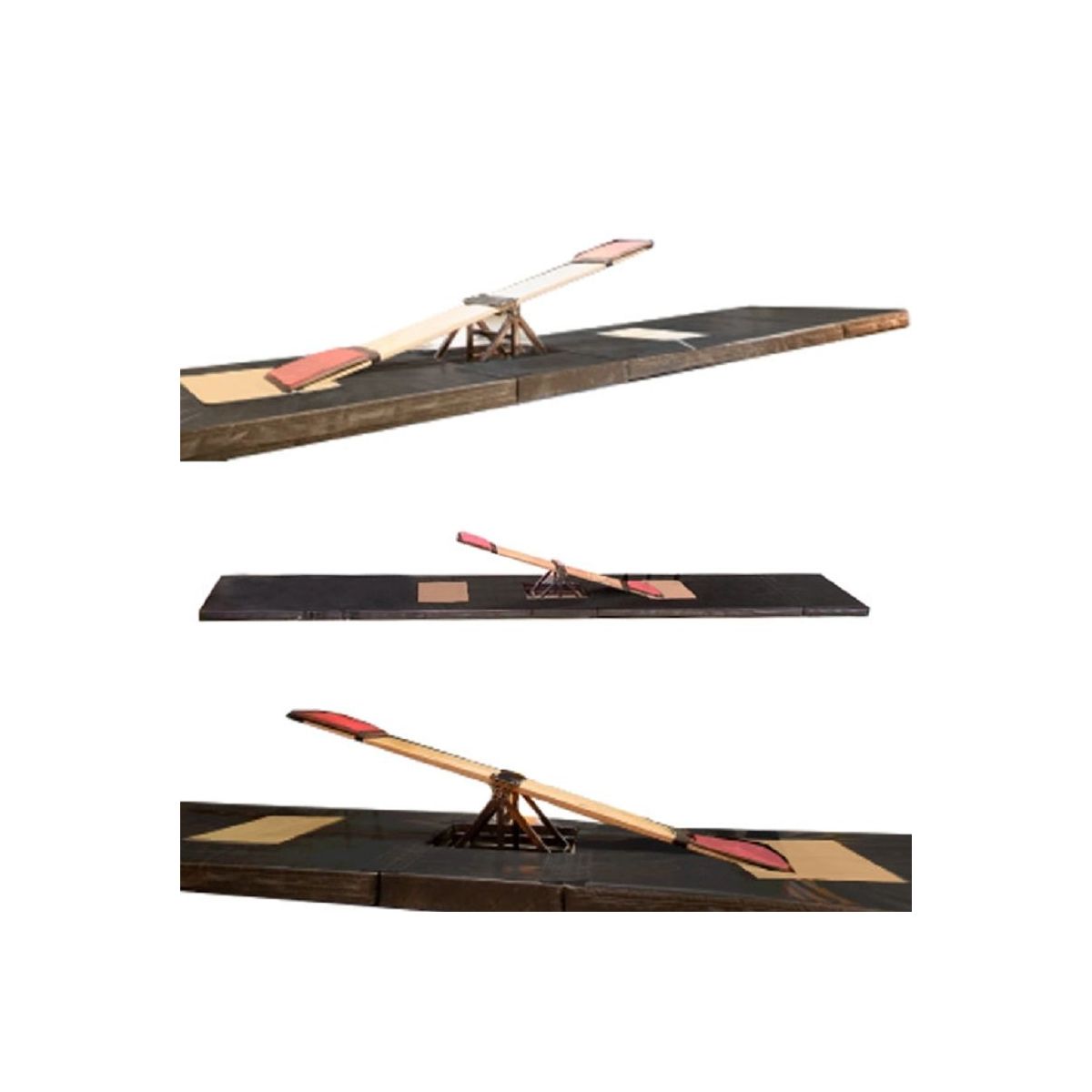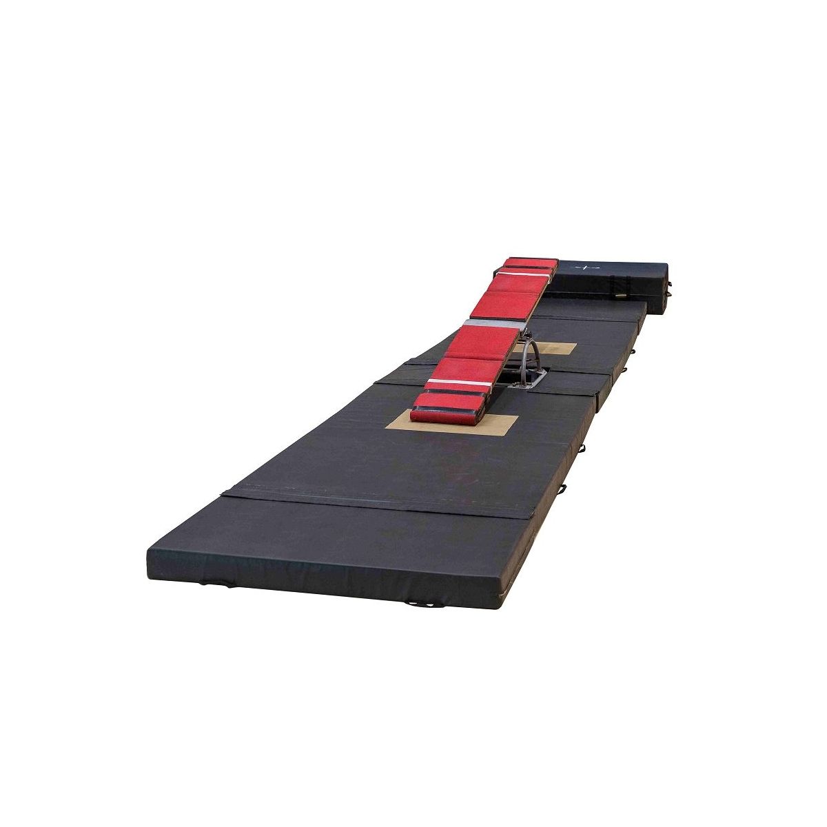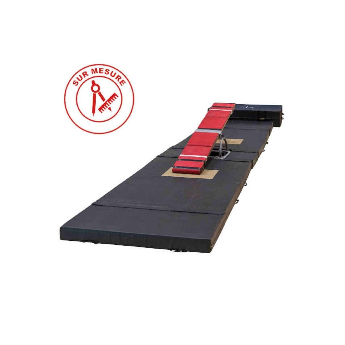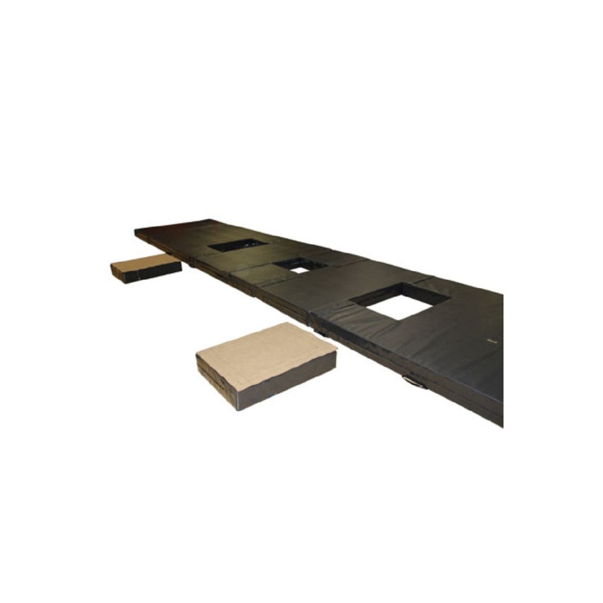 Ensemble de tapis pour bascule coréenne juxtaposables, idéal pour l'entrainement et les spectacles de cirque. Composé de matelas reliés par des bavettes velcro détachables sur le dessus, couleur noir mat.