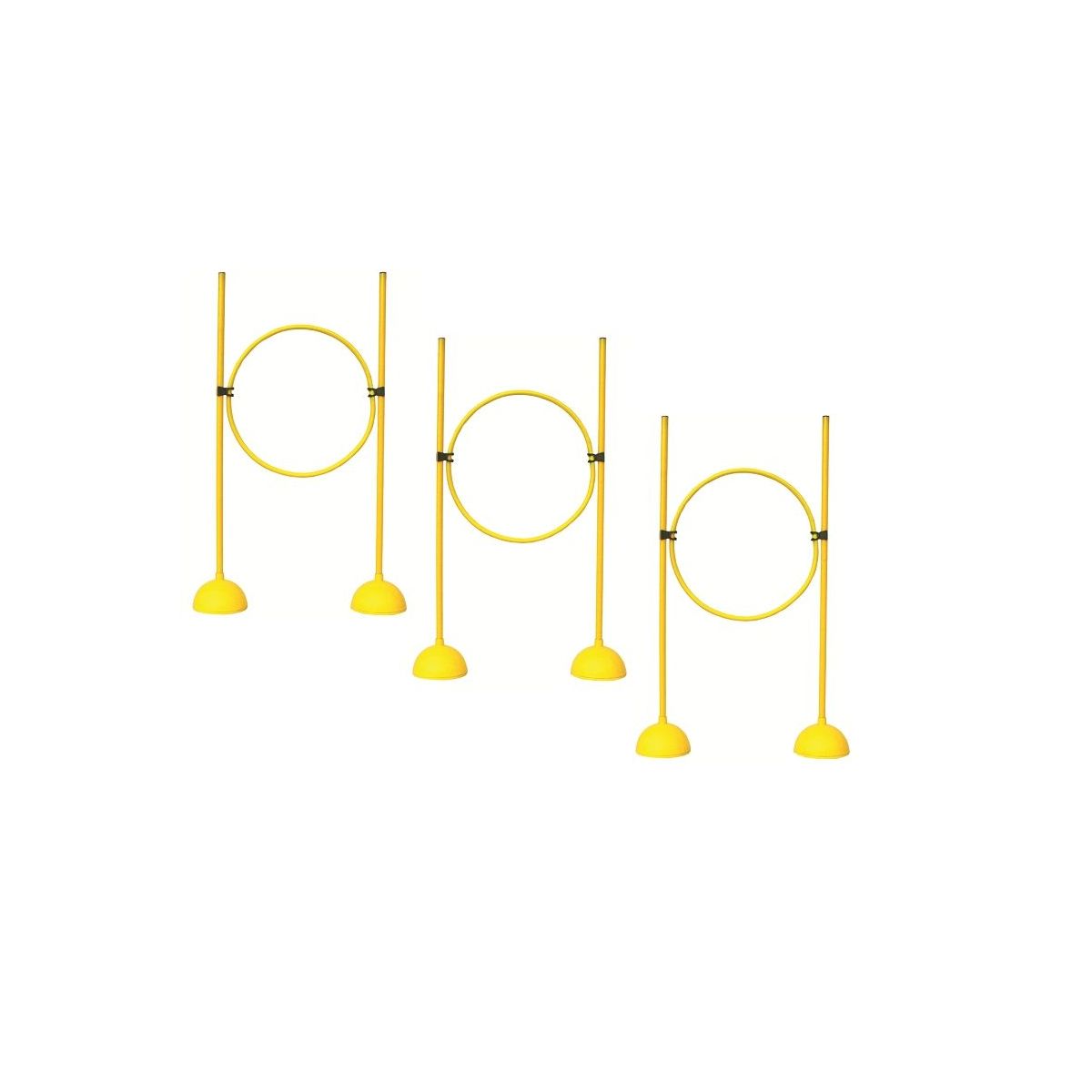 Composé de : 3 cerceaux diamètre 75cm, 6 plots, 6 jalons de 1.80m, 6 cliquets de fixation.