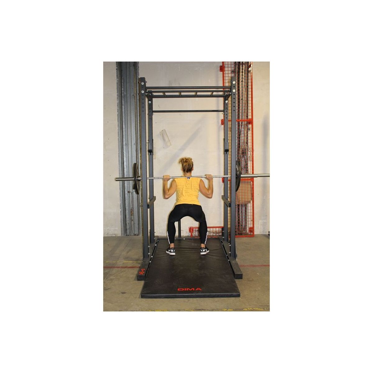 Cage à squat très résistante permettant le travail de squat, développé couché ainsi que le travail de traction et d'exercices en suspension. La cage à squat est personnalisable avec de nombreux accessoires Dima.