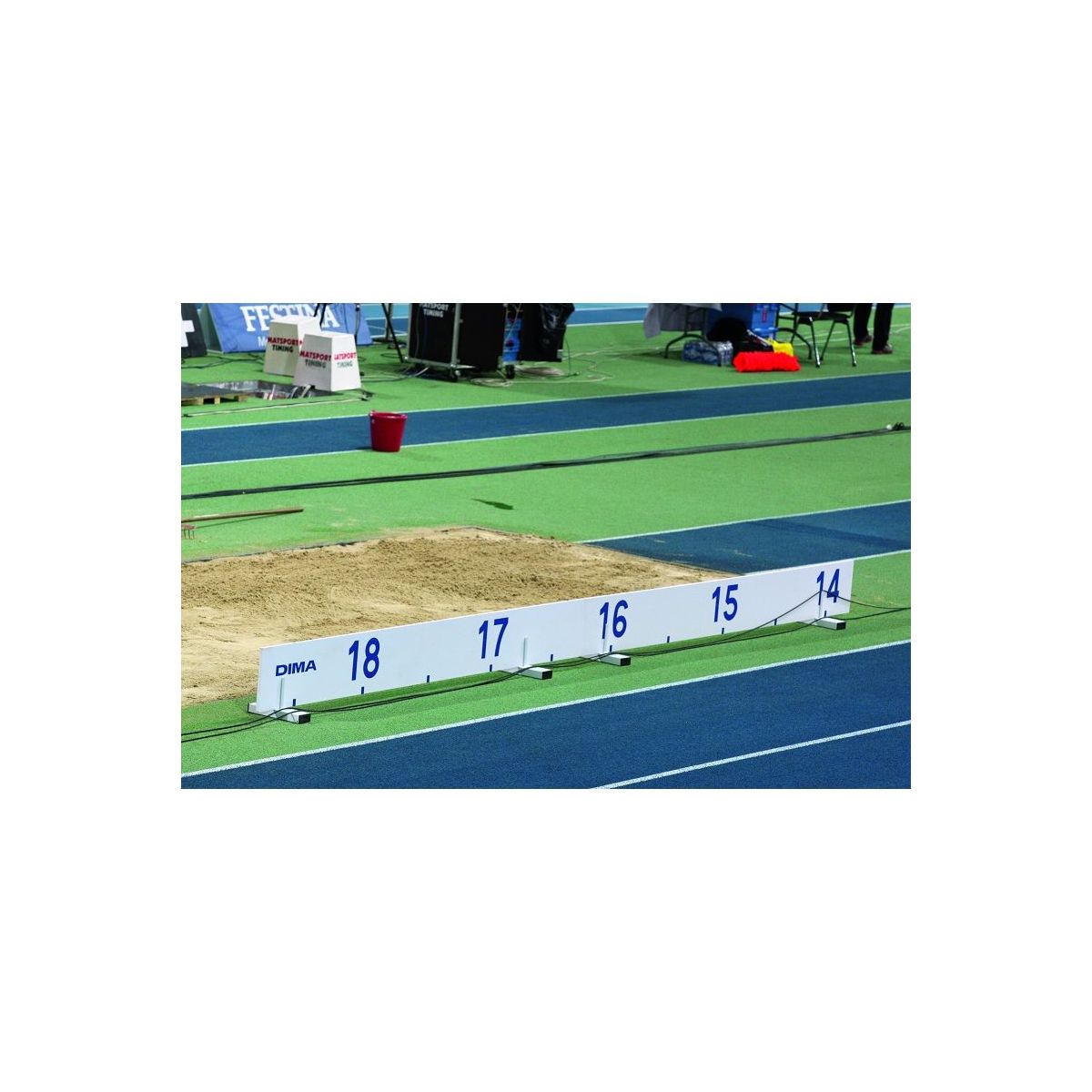 Marquage de 14 à 18 mètres pour le triple saut, avec indication tous les 50 cm.