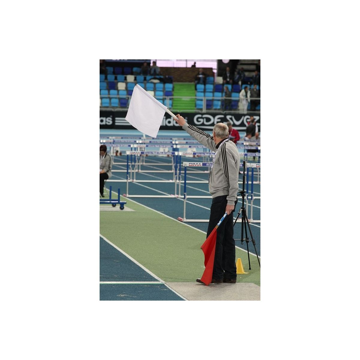 Les drapeaux de juge blanc et rouge sont obligatoires pour les compétitions.