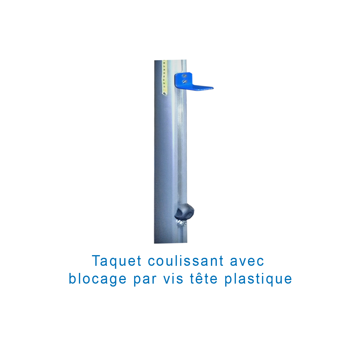 Taquet coulissant se déplaçant dans une rainure spécialement aménagée pour une manipulation aisée.